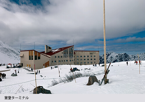 昨年の11月の中旬、立山黒部アルペンルートで有名な室堂に行ってまいりました。立山黒部アルペンルートは、長野県側の登山口である扇沢から富山県側の富山地方鉄道立山駅間を、ロープウェイ、バス、ケーブルカー等の交通機関で結ぶ山岳観光ルートです。標高3000m級の山々が連なる北アルプスを間近に見ることができ、登山者だけでなく一般の観光客にも人気があります。今回は、その中間地点にあたる室堂(標高2450m)まで富山県側から電車やシャトルバスを乗り継いで行ってみました。室堂には、標高3003mの雄山を主峰とする立山連峰を間近に見ることができるバスターミナルがあり、このルートの人気スポットです。